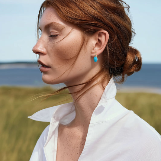 Oval Turquoise & Diamond Drop Earrings 18K Gold