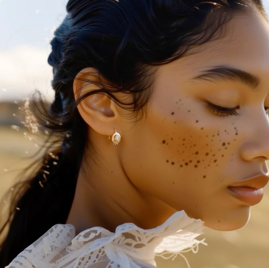 Cat Eye Pearl 18K Gold Hook Earring