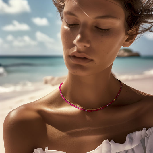 Birthstone July Ruby Ombre Necklace 14K Gold II