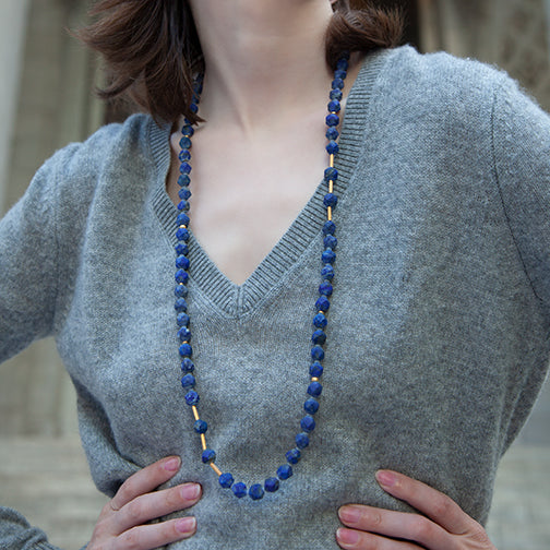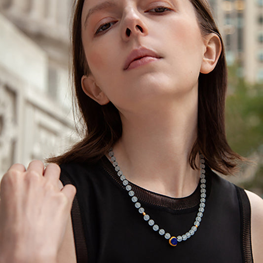 Waterloo Bridge Grey Chalcedony and Lapis Pendent Necklace