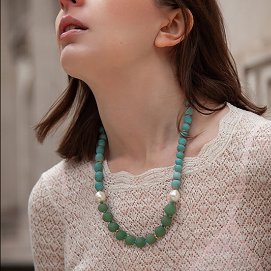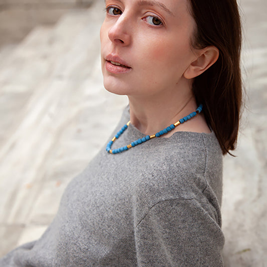 Baroque Pearl & Blue Ceramic Bead Necklace