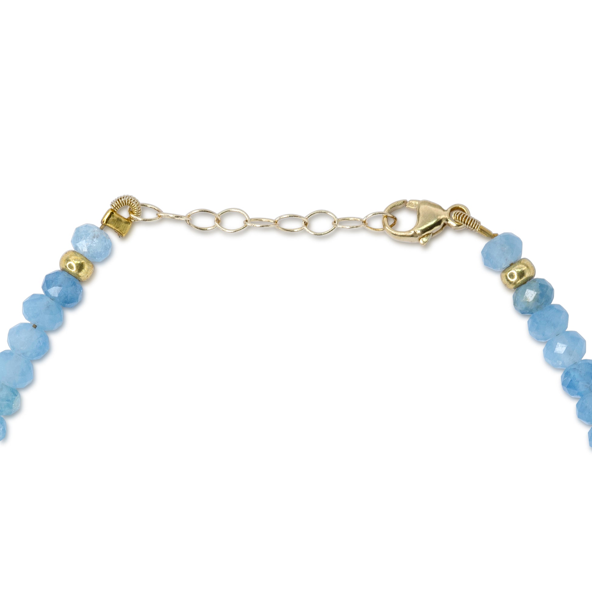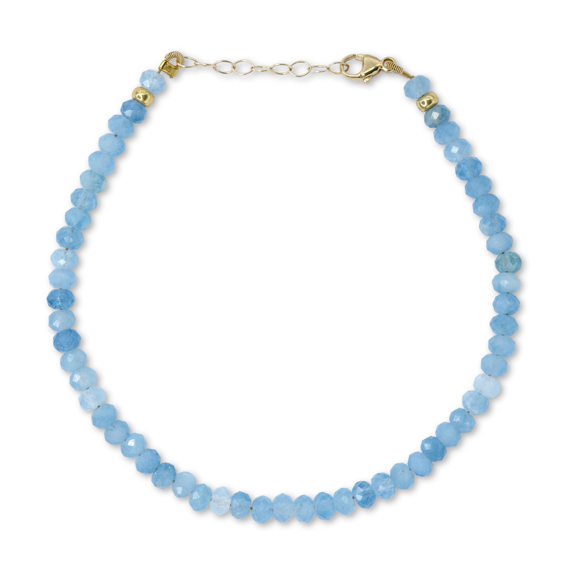 Immerse yourself in tranquil energy with this aquamarine and 14K gold bracelet from Bombyx House, a serene companion for life's ebb and flow.