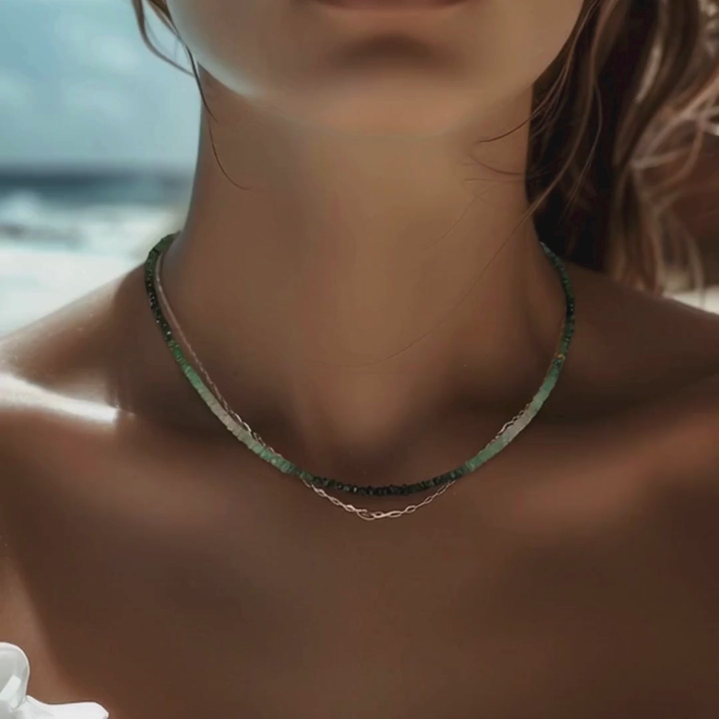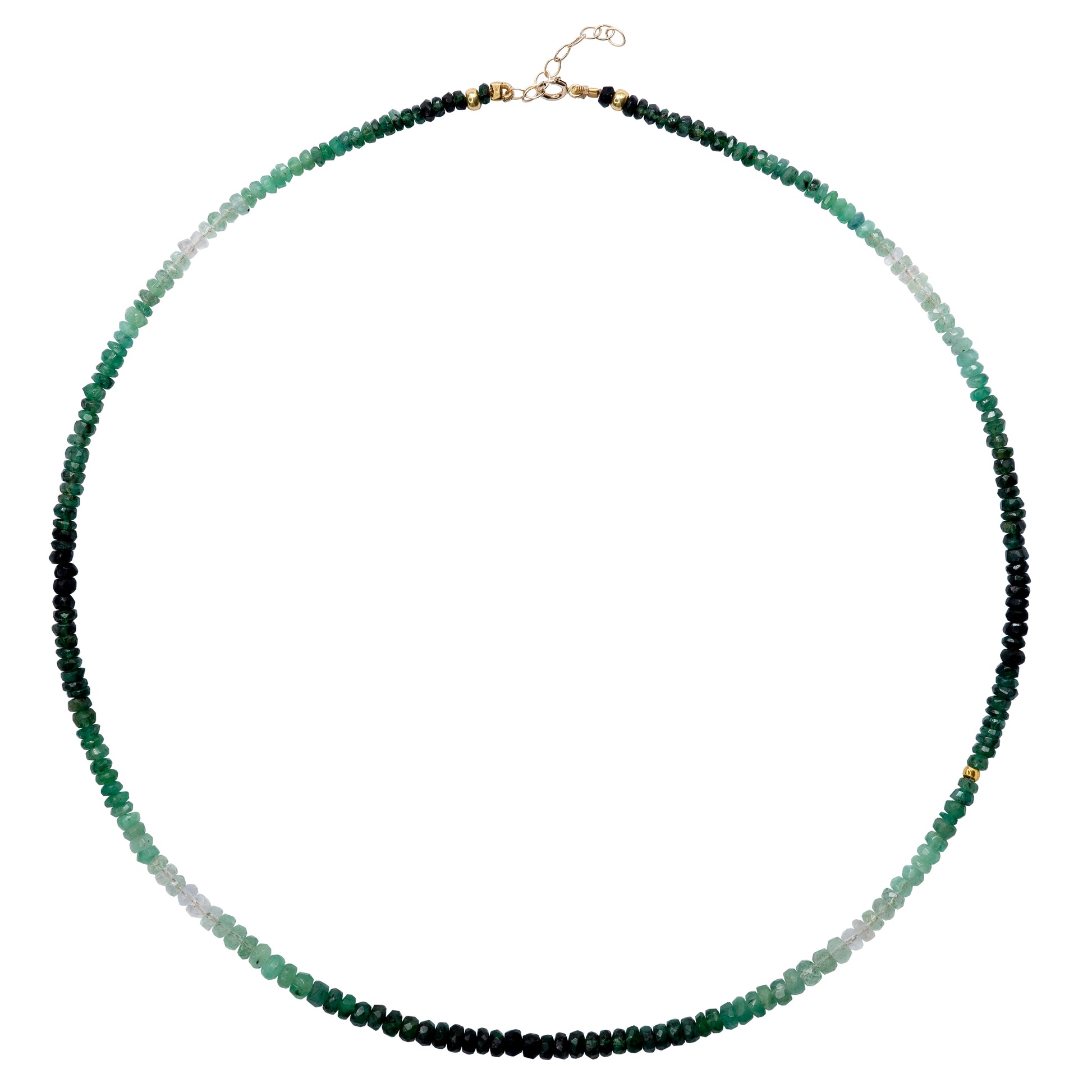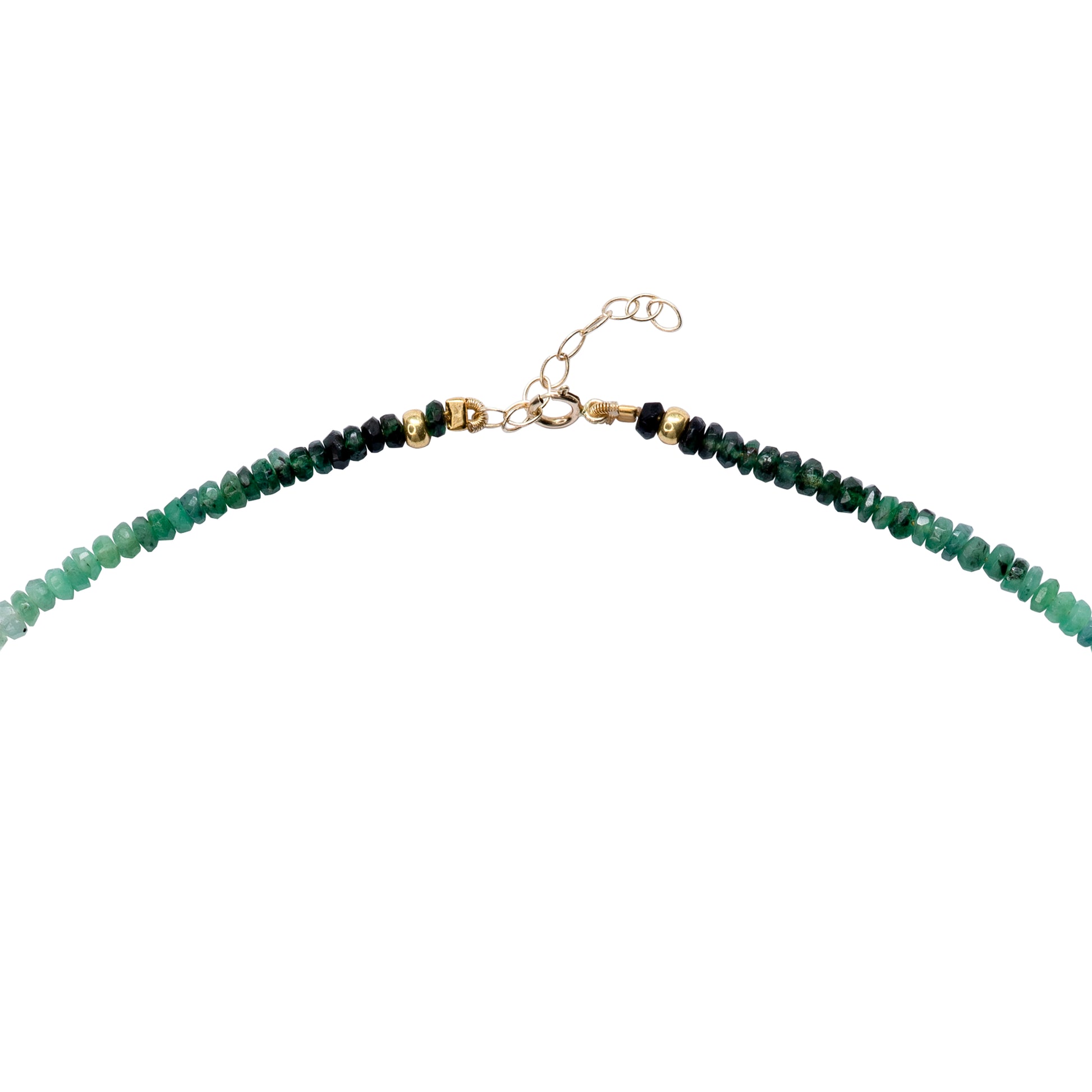 Celebrate your personal journey with this Emerald Ombre Necklace, a radiant homage to May's birthstone. As you wear this piece, you'll feel a deep connection to nature's renewal and your own growth, inspiring you to embrace new beginnings with grace and vitality. This piece is elevated with a single 18K gold bead, adding a touch of refined luxury.