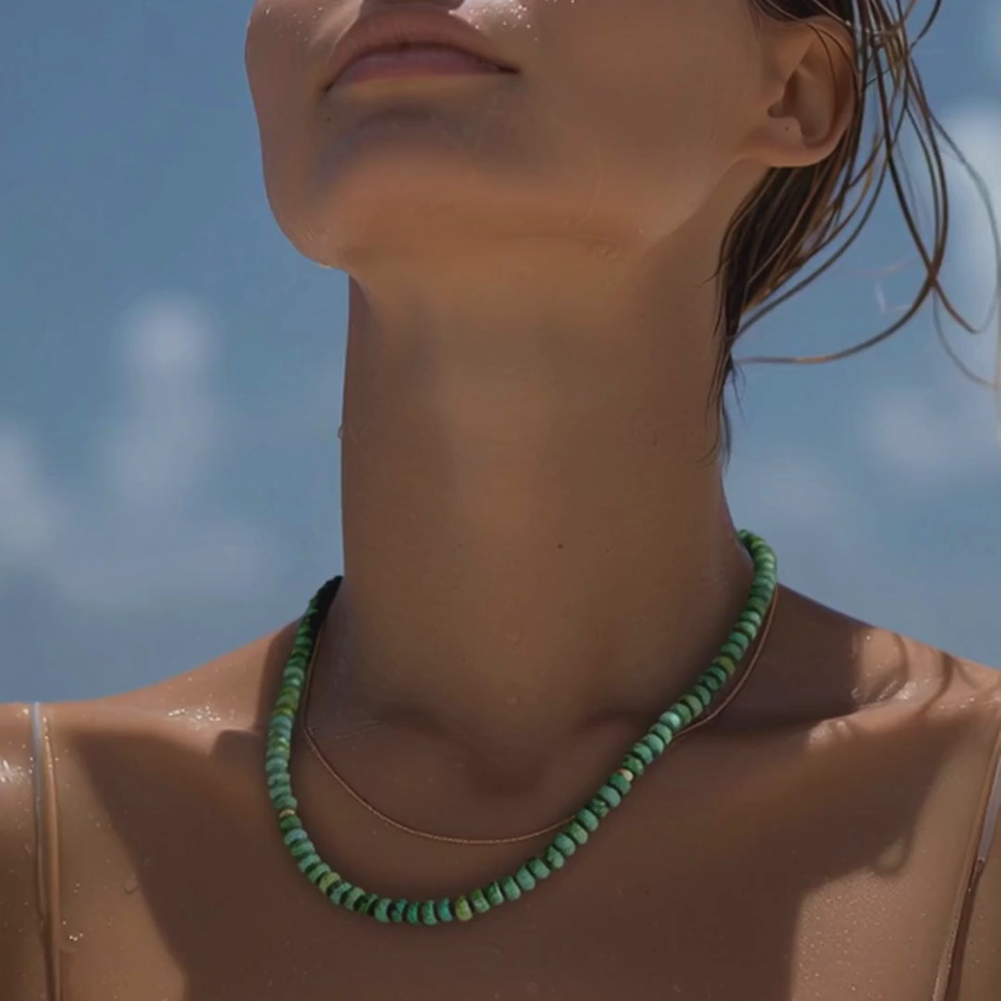 The vibrant green color brings a refreshing energy that revitalizes you. This necklace redefines sophistication, crafted to make you feel exquisitely refined and genuinely special, as if you've stepped into a timeless story where elegance and uniqueness converge.