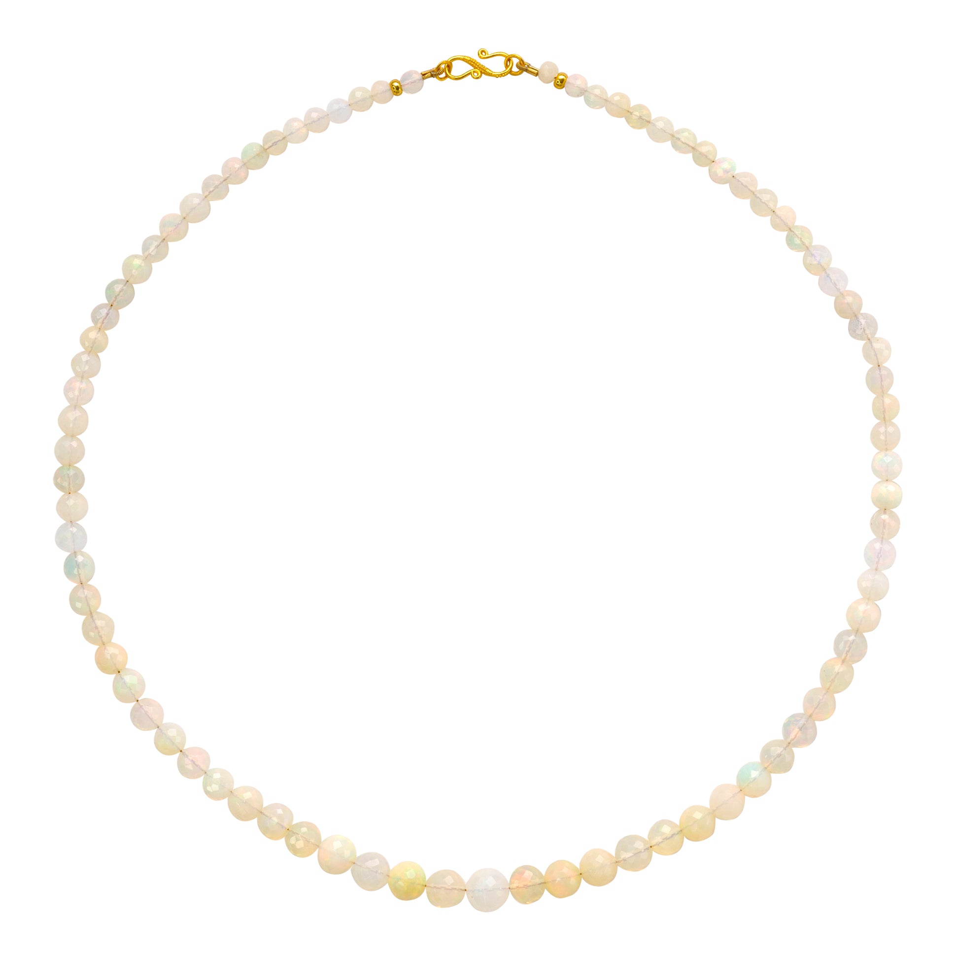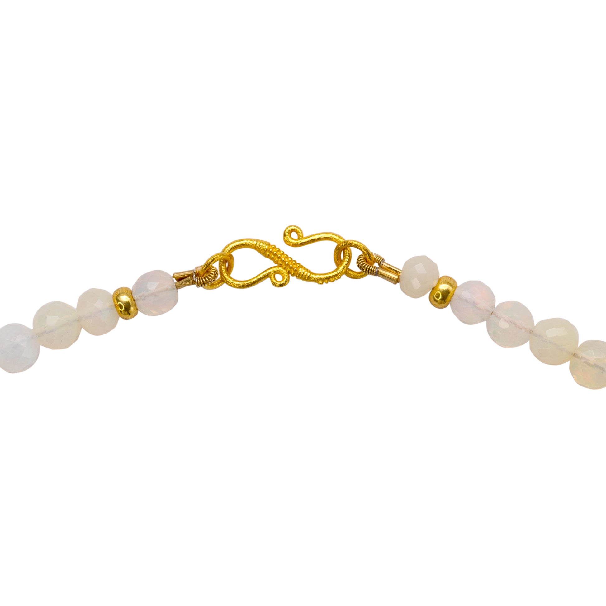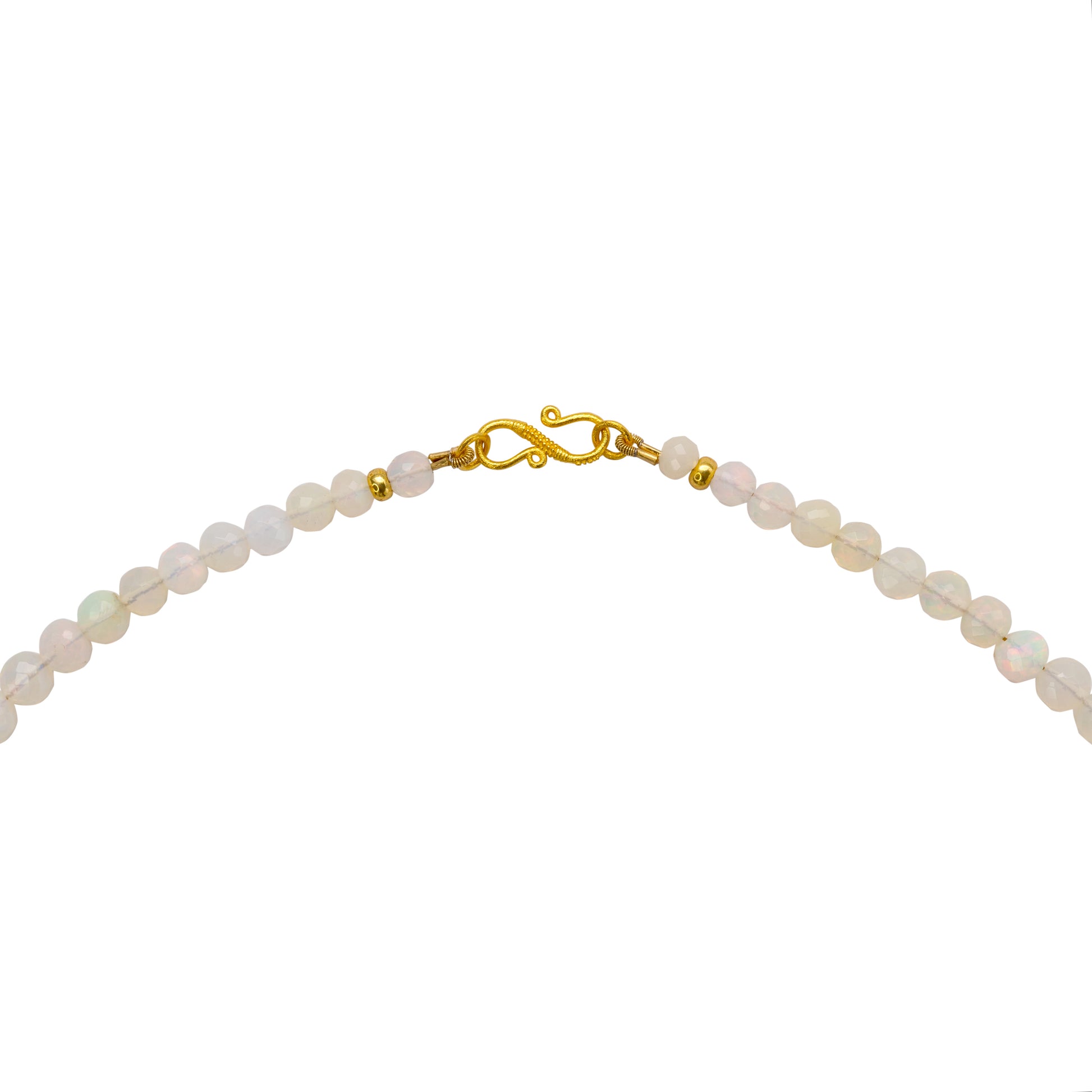 Wearing this Ethiopian Opal necklace is like carrying a piece of dawn's first light around your neck, each opal sphere capturing the tender warmth of sunrise in its luminous depths. As it rests against your skin, adorned with touches of 18K gold, you'll feel wrapped in an aura of ethereal radiance that transforms every moment into one of graceful enchantment.