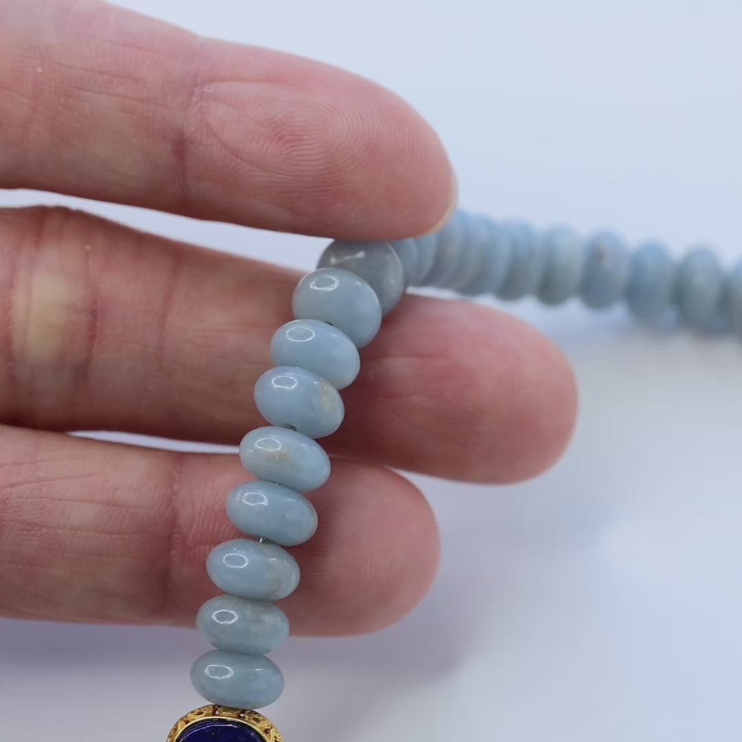 Drape yourself in the gentle whisper of dawn and dusk with this ethereal necklace, where the lavender Kunzite and serene Aquamarine embrace like sky meeting horizon. The brilliant Lapis accent shines like a captured star against this heavenly palette, creating a piece that transforms your presence into something quietly magical.