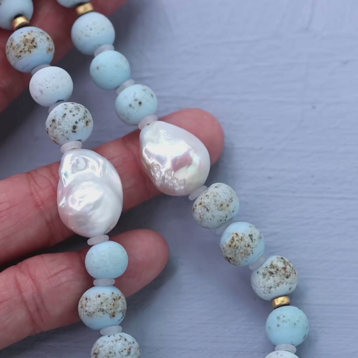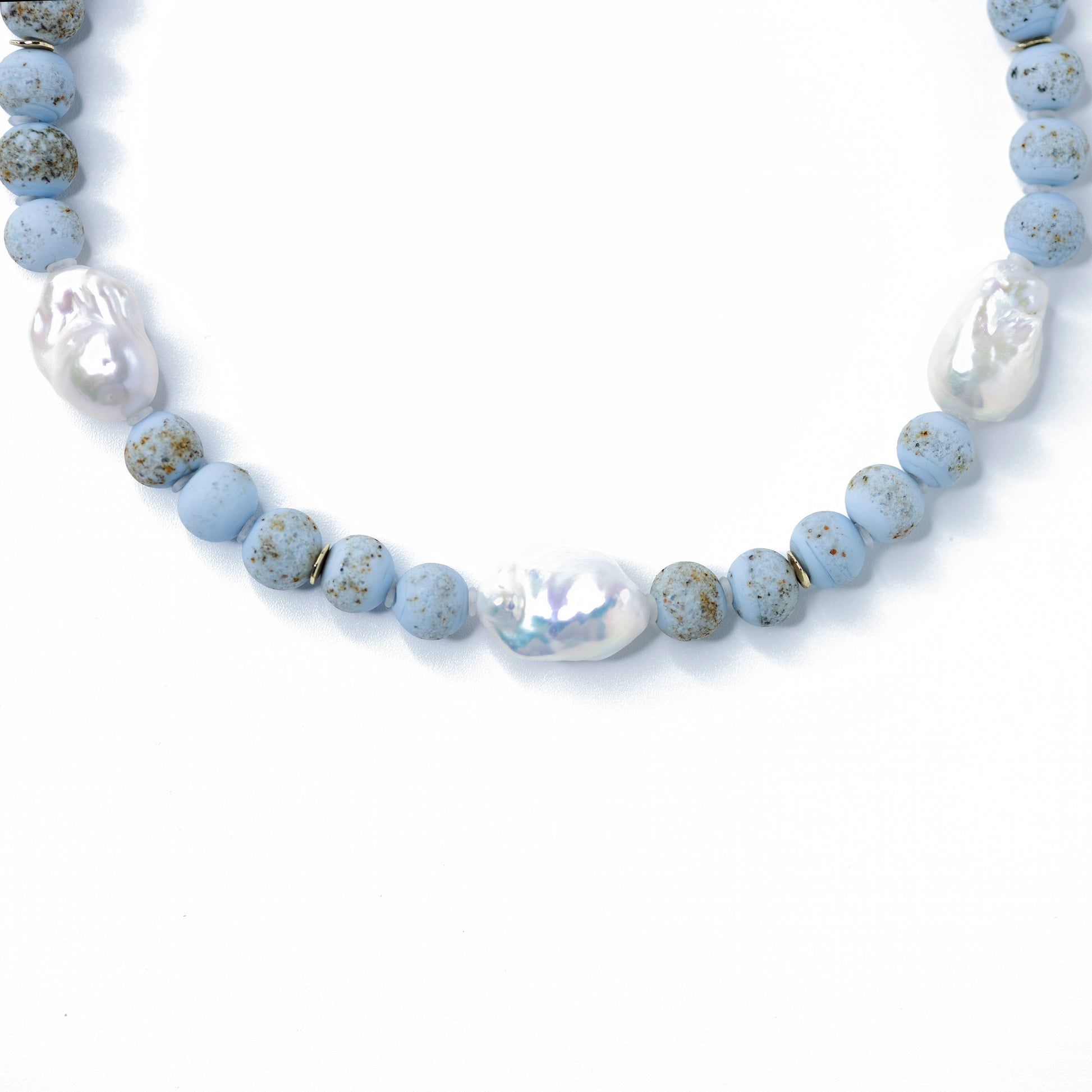 Baroque Pearl & Blue Ceramic Bead Necklace