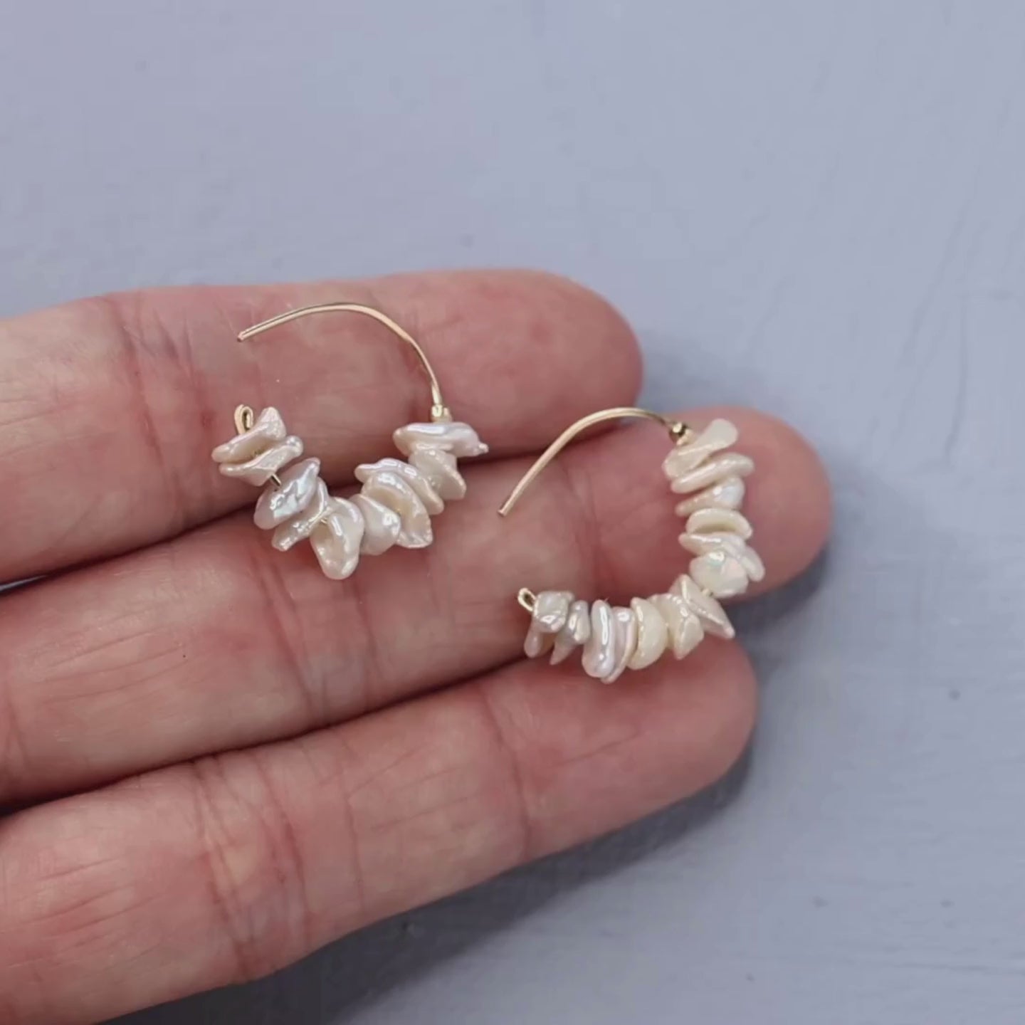 Delicate flower petals caught in a morning breeze, these lustrous pearls dance along your ear with effortless grace. Each baroque pearl catches the light differently, creating a soft symphony of creamy luminescence that moves with you.