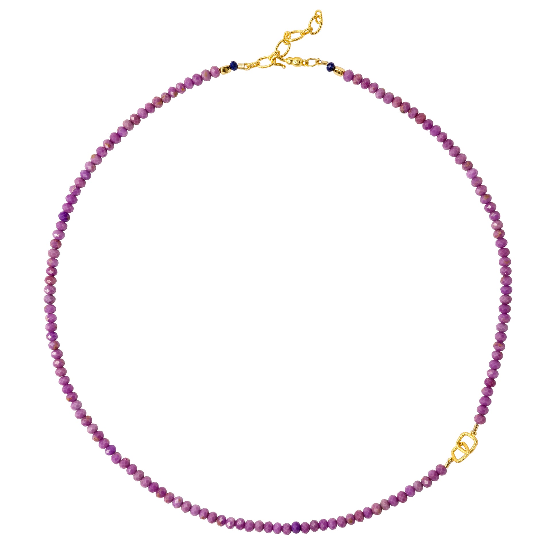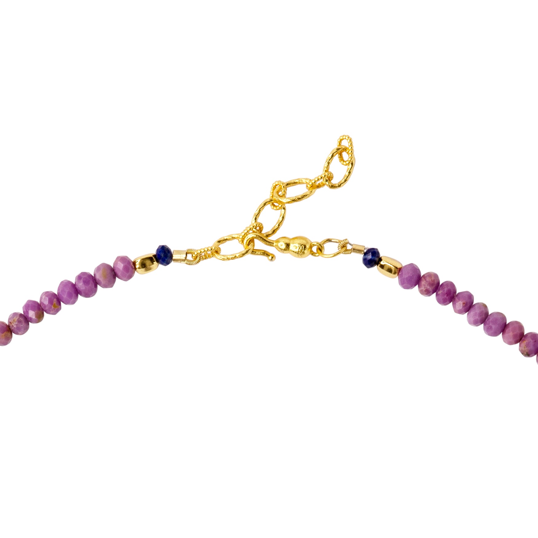 Embrace serenity with the Phosphosiderite Necklace, a delicate strand of faceted gemstones in soft violet hues. Known for its calming energy, phosphosiderite is believed to inspire clarity and inner peace. Accented with 14K gold details, this refined piece is a timeless expression of elegance and tranquility.