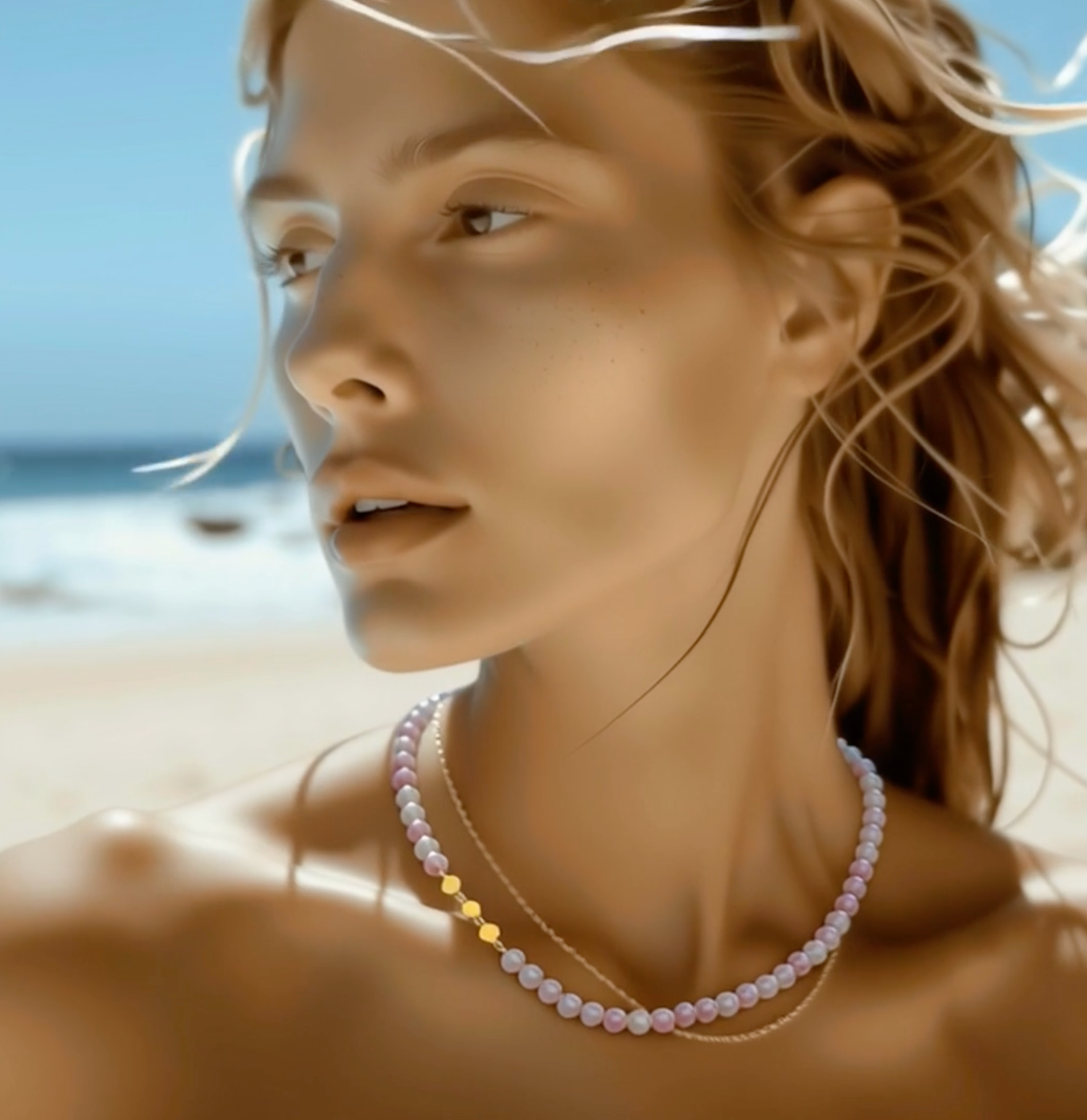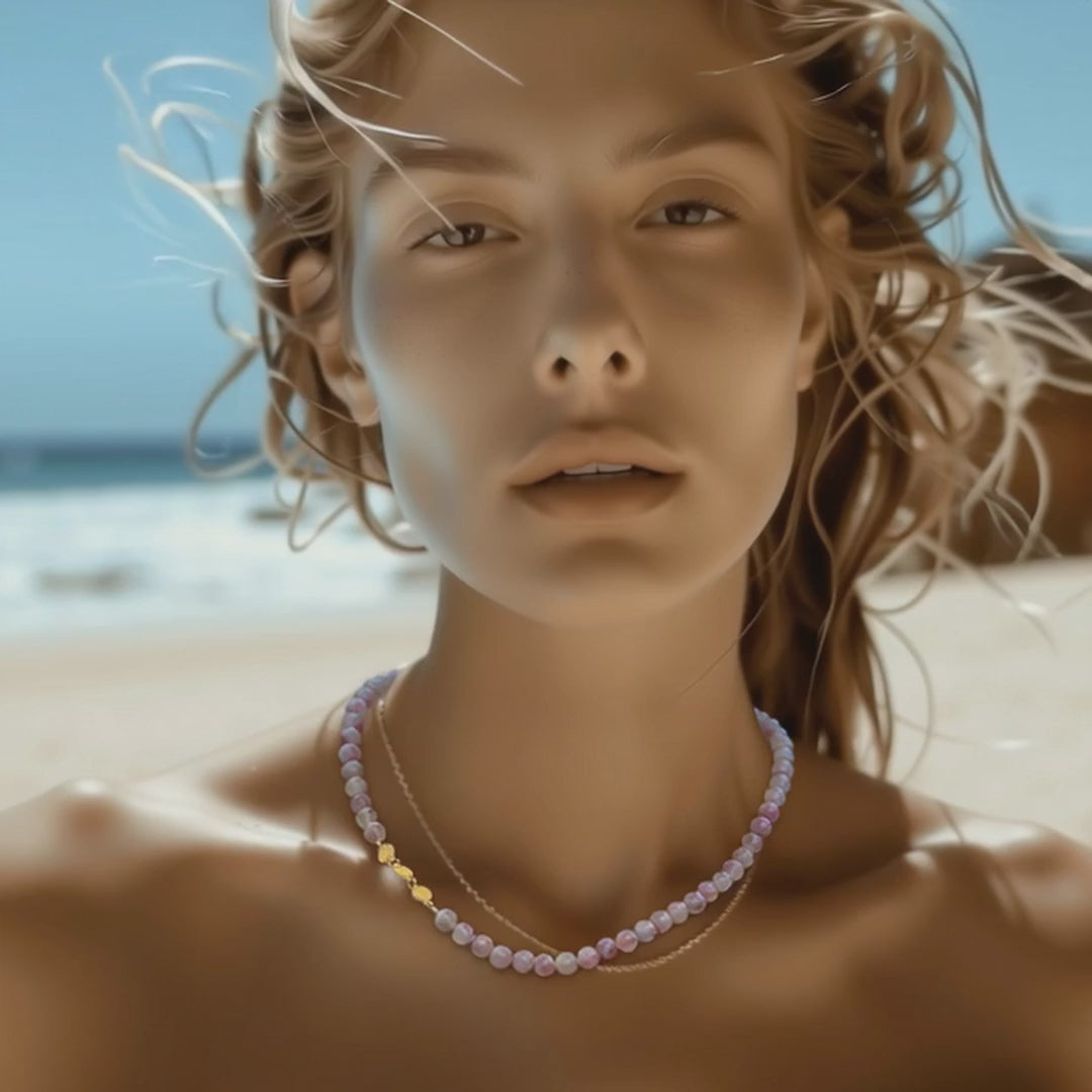 Soft as a whispered secret, this Pink Tourmaline necklace carries the tender blush of dawn, transforming your essence with its delicate, dreamy hues. Each stone seems to pulse with an inner light, inviting you to embrace your most vulnerable and powerful self.