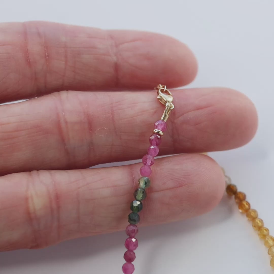 Like capturing a perfect rainbow after a summer shower, this bracelet adorns your wrist with nature's most vibrant palette in miniature. Each tourmaline bead holds a different hue of possibility, creating a personal talisman that awakens joy and creative energy with every glance or gentle movement.