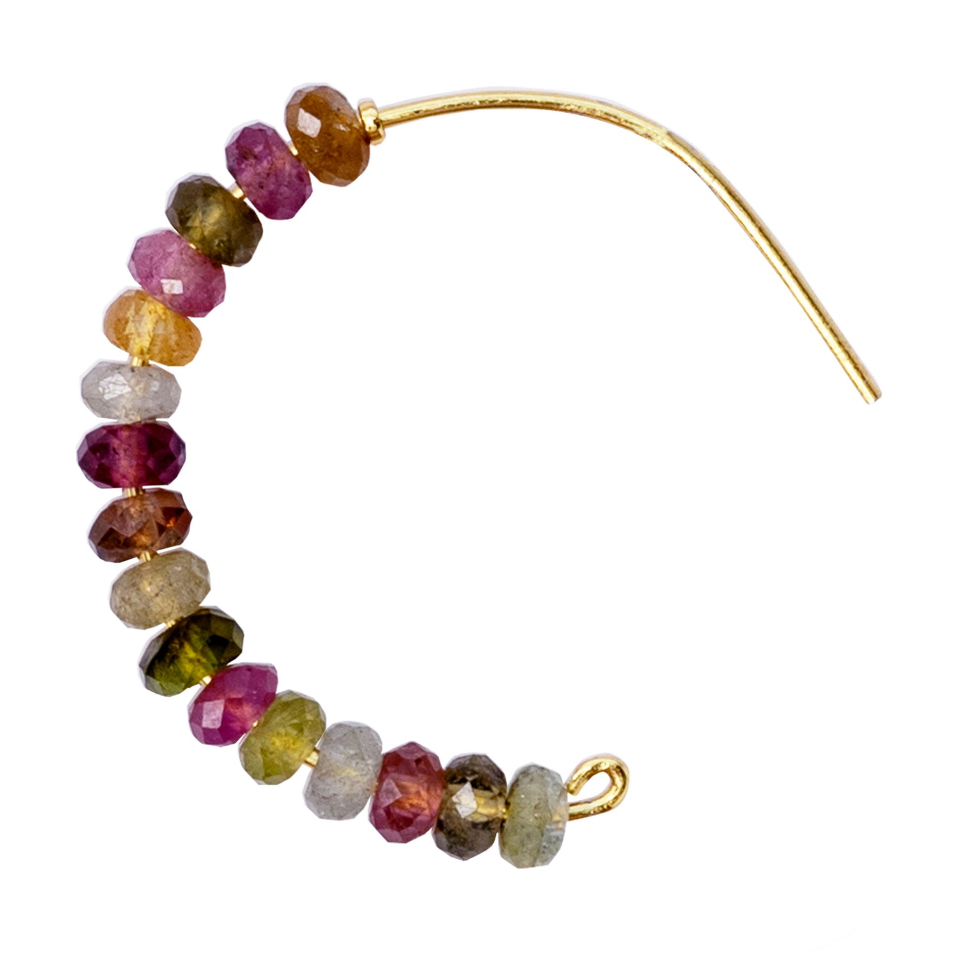 Rainbow Tourmaline Half Moon Earring Large 14K Gold Hoop