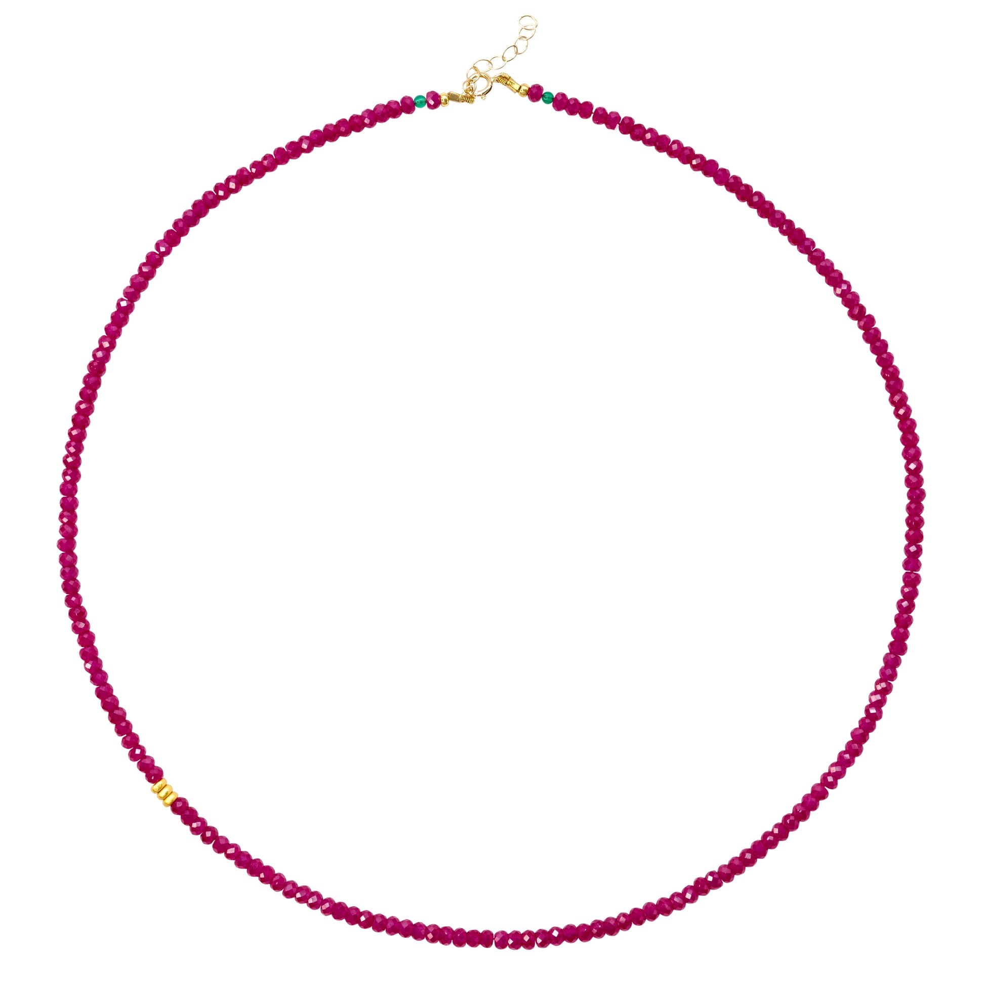 This vibrant ruby necklace from Bombyx House exudes feminine power. The rich gemstone strand commands attention with its captivating hue.