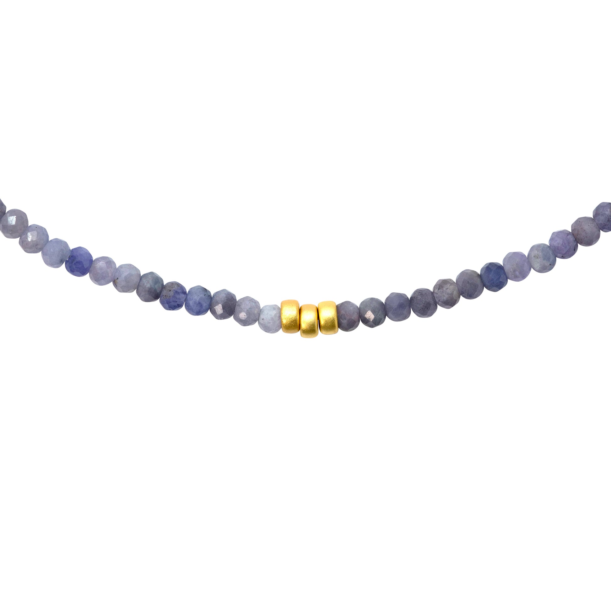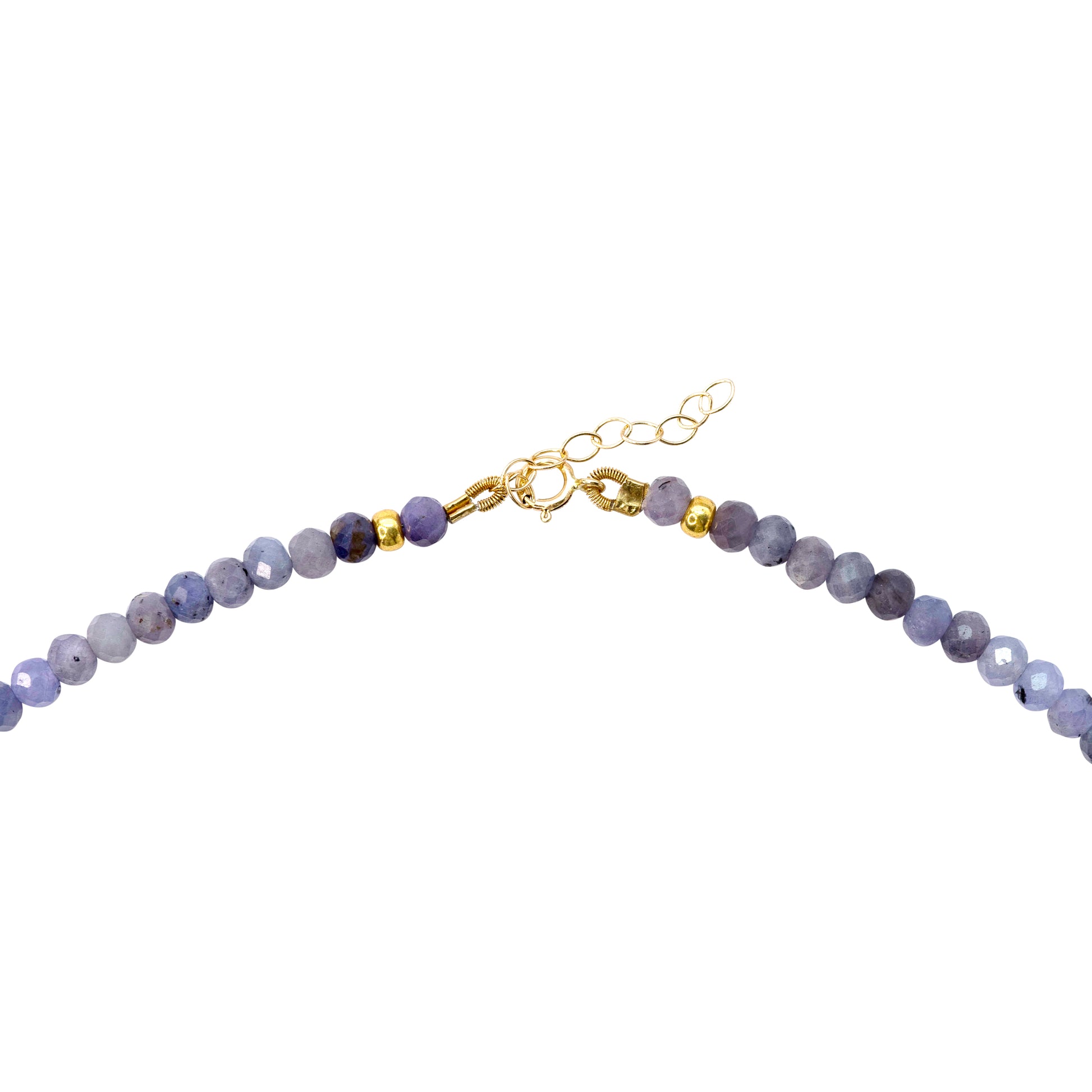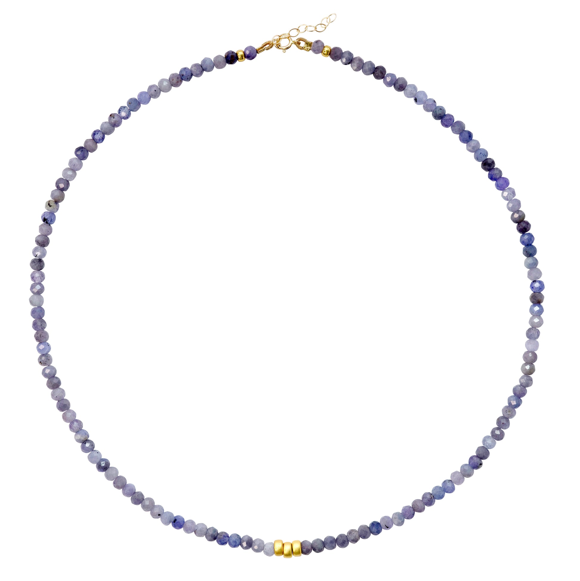 This captivating tanzanite and 14k gold necklace from Bombyx House radiates an aura of sophistication and timeless allure.