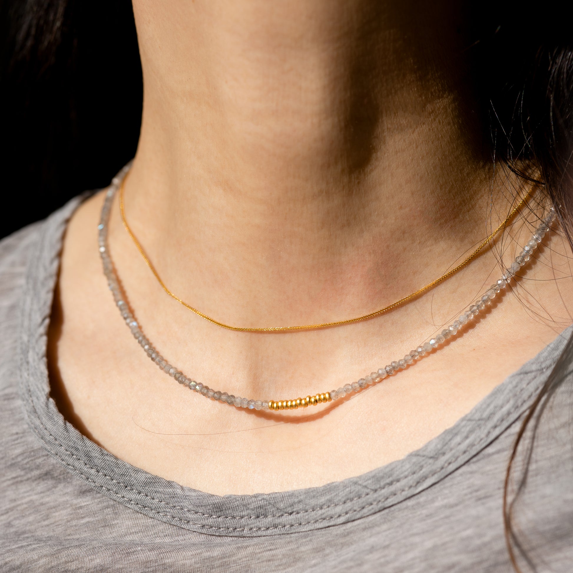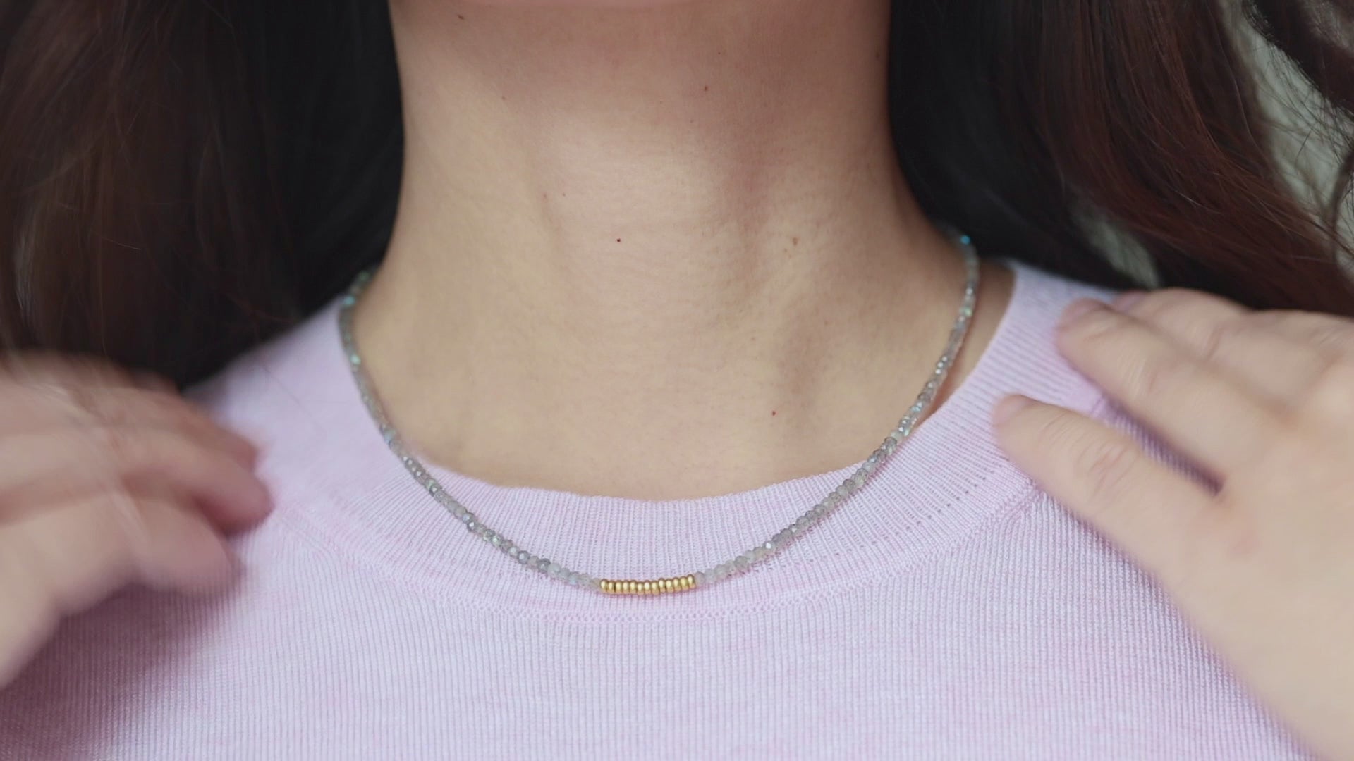 This Tiny Labradorite Necklace will make you feel ethereal and enchanting, with its subtle shimmer enhancing your skin tone and adding a touch of mystical allure to your style. It brings a delicate yet captivating elegance, perfect for elevating any look with a hint of magic.