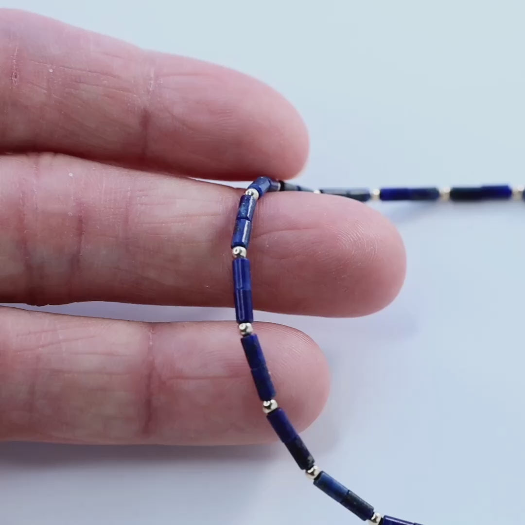 Tiny Lapis Lazuli Tube Princess Necklace