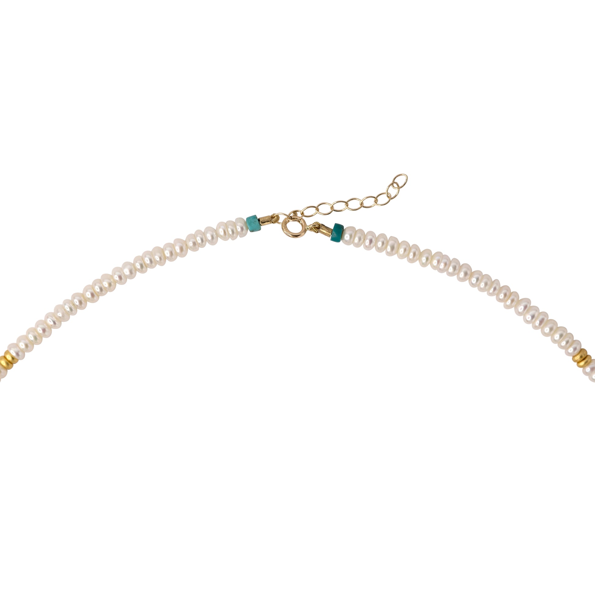 This delicate pearl necklace features a harmonious blend of classic elegance and contemporary style, elevating your look with refined charm and versatile beauty.