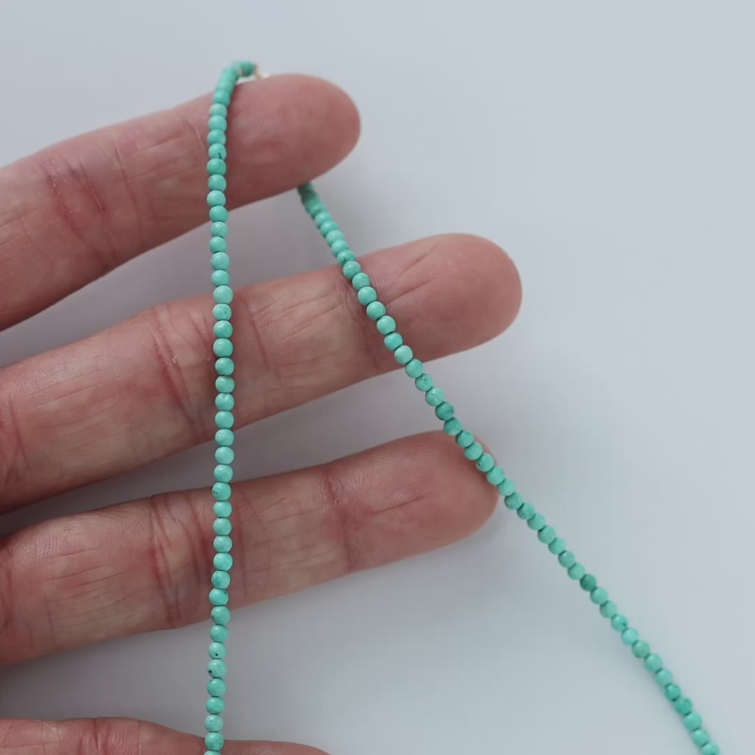 This tiny light blue turquoise necklace will make you feel serene and effortlessly chic, adding a touch of tranquil elegance to your style.